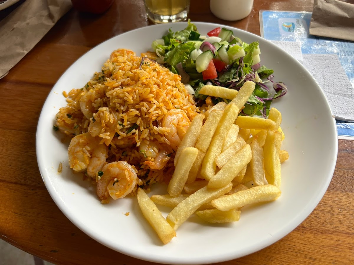This restaurant is a throw back to the yacht club days! The restaurant is located right on the gulf and almost every table in the front area has a view. The decor includes lots of fishing items hanging from the ceiling - interesting to look at while you are waiting for service. They have a good variety of seafood dishes and some chicken dishes. My companions enjoyed their seafood dishes tremendously. I had a salad which I greatly advise avoiding. The table next to us had the pescado entero - oh my gosh - it was truly incredible. Almost a work of art!! The service was slow (pretty typical for CR) so don't stop if you are in a rush. The tables were well spaced apart so there was no fear in coming in contact with the people next to us. I would definitely recommend but stick to the seafood plates.